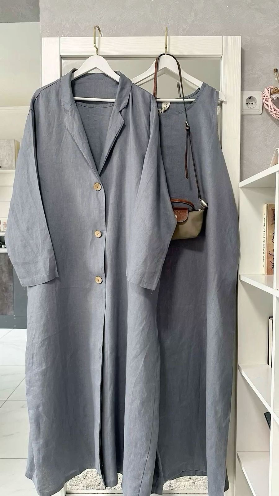 Ensemble deux pièces raffinéRobe longue élégante accompagnée d’un kimono léger, confectionné dans un tissu fluide et confortable.